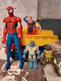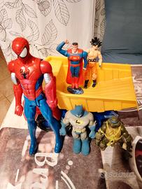 Vendo in blocco pupazzi dei fumetti uomo ragno Superman tartarughe nijia ecc come da foto . Ritiro in loco