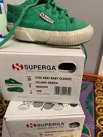 Vendo due paia di Superga Classic Baby, taglia 20, colori bianco e verde, ottime condizioni.