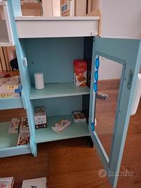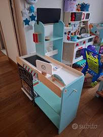 Supermercato giocattolo in legno, come nuovo I prodotti sono fatti di carta Dimensioni: Dimensioni: 70 cm x 55 cm x 100 cm Ultima foto presa da amazon