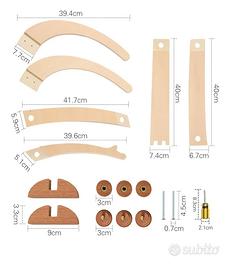 Supporto in legno per appendere giostrine sia per il lettino che per il tappetone da gioco. Noi l'abbiamo usato nei primi mesi per la serie di giostrine montessoriane per il tappetone.