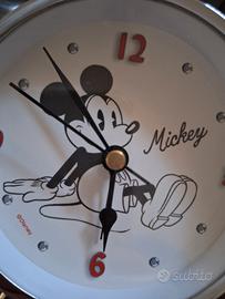 sveglia mickey mouse in metallo cromato, da collezione anni 90 nuova mai utilizzata