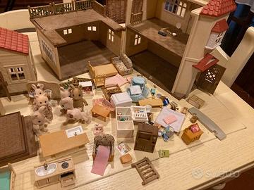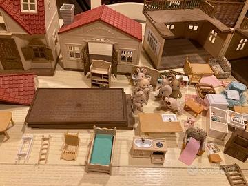 vendo casa sylvanian families + famiglia coniglio + oggettistica varia come da foto