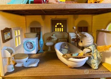 Villetta su tre piani composta da vari elementi diversi. Arredi interni e da giardino, automobile con passeggino e bicicletta con seggiolino. Frigo e tavola ricchi di cibo e stoviglie.