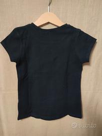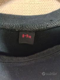 T shirt nera in cotone, 8-9 anni, spalle 25 e altezza 44 cm.