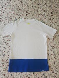 T-shirt Adidas in perfetto stato pari al nuovo usata solo un qualche occasione. Colori brillanti, ottimo cotone. Taglia 11/13 anni ma veste 10 anni 140 cm max.