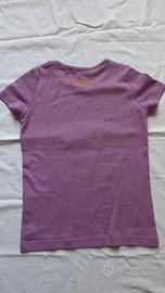 Indossata qualche volta ma ancora in ottime condizioni. T-shirt a maniche corte da bimba. Colore lilla con stampa sul davanti di Garfield con brillantini e strass. Tessuto 100% cotone. Taglia 10 anni. Marca Liu Jo Junior