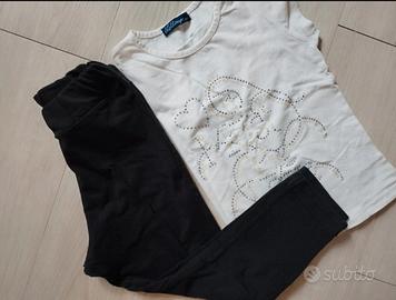 - lotto composto da 3 leggings - a pois di h&m, con banda e scritta laterale di zara e blu OVS taglia 8 anni. maglia con gira brilla h&M e con petali e paillettes di mango. anni 8. €10,5