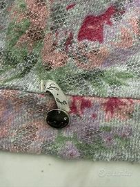 Bellissima t-shirt elegante a maniche corte firmata Liu Jo Junior, perfetta per la primavera o l'estate. Il capo è caratterizzato da una raffinata stampa floreale nei toni del rosa, lilla e verde acqua su una base grigio chiaro melange. Tessuto: Morbido e leggero, ideale per garantire comfort tutto il giorno. Dettagli: Scollo rotondo e linea leggermente morbida. Presenta un piccolo dettaglio metallico logato sul fondo. Stile: Versatile, si abbina perfettamente sia con un paio di jeans per un look casual, sia con una gonnellina per un'occasione più speciale.