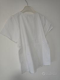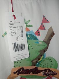 T-shirt maglia donna Braccialini taglia XL Nuova con etichetta e cartellino Stampa Camaleonte multicolore Bianca mezza manica Composizione cotone elasticizzato Prezzo di cartellino € 99,00