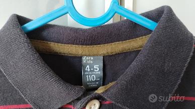 T-shirt manica lunga, in cotone, con comodo cappuccio. Taglia 4-5 (110 cm.), ma veste abbondante. EU.4. Polo Zara Kids, cotone fantasia righine rosse e scritte fronte/retro. Nessun buco/strappo.. Taglia 4-5 (110 cm.), ma veste abbondante. EU. 3. Vendo anche separatamente.