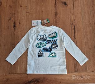 T shirt a maniche lunghe bianca 12/18 mesi 100% cotone Nuova