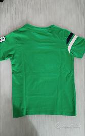 Maglietta in cotone 100%, colore verde e fantasie in bianco della Paciotti 4US. Adatto a bambini di età tra i 6/7 anni. Perfetta, pari a nuovo