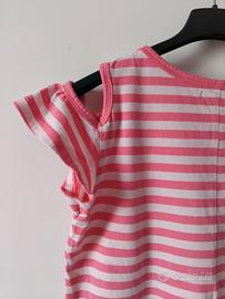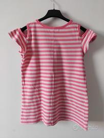 T-Shirt Panna E Rosa A Righe Con Volants Bambina