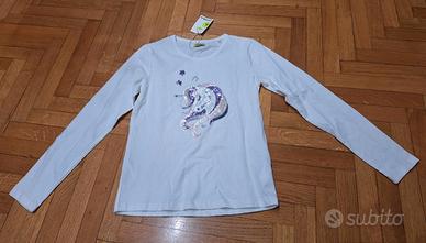 T-shirt per bambine di 11-12 anni (152 cm), nuova, marca Losan, con unicorno, a manica lunga, colore bianco, ancora con cartellino.