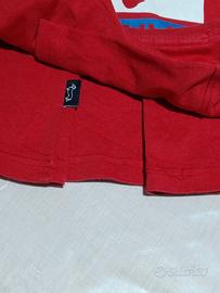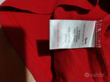 Vendo maglietta originale Harmont & Blaine, taglia 10 anni. Colore rosso brillante. La t-shirt è in buone condizioni generali, come si può vedere dalle foto. Segnalo per massima correttezza due piccoli dettagli estetici: Alcuni minuscoli puntini sulla parte frontale (visibili nella foto dove li ho cerchiati). Qualche filo leggermente sfilacciato in corrispondenza degli spacchetti laterali in basso. Il prezzo di 5€ tiene già conto di queste piccole imperfezioni. Non ho provato a rimuoverli per lasciare il capo nello stato originale.