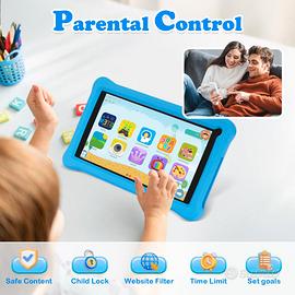 Tablet bambini 7 pollici con Display IPS, Android 13 Tablet per bambini, Descrizione CEDO QUESTO ARTICOLO PER DOPPIO REGALO. 【Potente Tablet per Bambini】: Tablet per bambini è alimentato dal più recente Android 13, Le prestazioni sono notevolmente migliorate per garantire un funzionamento confortevole. Tablet viene precaricato con molte applicazioni educative e di intrattenimento per i bambini per imparare e giocare, molti giochi di puzzle divertenti, libri, musica,i tablet per bambini certificati GMS possono scaricare altre app come Kids Space, Disney, Youtube e Netflix in Play store .【Memoria elevata】: Il Tablet Bambini è dotato di 8GB(3+5) RAM+ 64GB di ROM.Supporta una scheda di memoria da 128GB, 8GB di memoria operativa possono eseguire senza problemi più applicazioni contemporaneamente, soddisfacendo così il bambino nell'ascolto di lezioni e nella ricerca di materiali contemporaneamente, 64GB di ROM, 128GB di micro SD la grande capacità ti assicura di avere sempre spazio per migliaia di libri, libri audio, programmi TV, app e giochi.【Protezione Degli Occhi】: il tablet bambini K708 ha un display ad alta risoluzione , i bambini possono guardare film, giocare e leggere libri con immagini e video nitidi e vivaci. La regolazione automatica della luminosità combinata con il design anti luce blu protegge la vista dei bambini. Consenti a tuo figlio di imparare e crescere in un ambiente più sicuro e confortevole.È un regalo ideale per bambini per Natale, Ringraziamento, compleanno.【Custodia Protettiva EVA&Controllo parentale】: La custodia per tablet è realizzata in materiale EVA. La custodia in silicone leggero e ammortizzante aiuta a prevenire danni in caso di caduta o urto. Dotata di supporto per tablet regolabile per un eccellente angolo di visione. Le ricche impostazioni di controllo genitore-figlio, tra cui limitazione del tempo di utilizzo, restrizioni sulle app, contenuti accessibili e siti Web, fanno sì che i genitori rassicurino le attività online dei bambini.