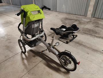 Metto in vendita questa praticissima bici cargo a tre ruote convertibile in passeggino in meno di un minuto, senza attrezzi. Il prodotto include ovetto neonato con riduttore integrato, ideale sin dalle prime settimane di vita del bambino. Telaio in alluminio leggero e resistente, cambio a 3 velocita, freni affidabili e pneumatici in ottime condizioni. Perfetta per chi vuole pedalare insieme al proprio bimbo fin da subito, sia in citta che su percorsi ciclabili.