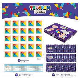 Ogni tangram gioco misura 9,8 x 9,8 cm, rendendoli ideali come pensierini compleanno bambini.