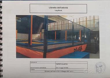 attrazione viaggiante tappeti elastici misure circa metri 14×8 dotata di tutto il necessario per il montaggio e documentazione di collaudo tecnico.
