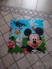 2 tappetini da gioco puzzle di Topolino: uno di 4 pezzi (64x64cm) quadrato e l'altro di 6 pezzi (64x96cm) rettangolare, impermeabile e antiscivolo.