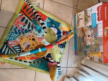 Vendo tappetino gioco Fisher-Price per neonati, con archetti colorati e giochi appesi (specchietto, animaletti, sonagli).