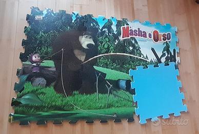 Tappetino gioco a incastro di Masha e Orso. Il set è composto da 6 pezzi puzzle da incastrare, realizzato in schiuma EVA. Spessore di oltre 1 cm extra isolante.
