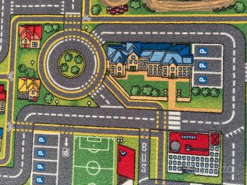 Tappeto per bambini con disegni molto belli di città e Strade Il tappeto è Molto Grande (140cm x 200 cm) cosi che il bambino è seduto sul tappeto e non prende freddo mentre gioca con le sue macchinine I disegni sono molto belli (Castello, Piscina, Scuola, Caserma dei pompieri) La qualità durevole e sta in ottimo stato Da venire a recuperare a Roma zona Battistini