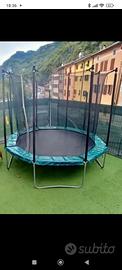 Tappeto elastico compreso di copertura .Rivestimento esterno usurato. Molle e base perfettamente intatto. 3 metri diametro.Trasporto a carico dell'acquirente