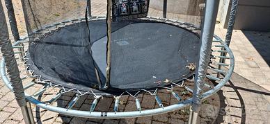 tappeto elastico 250 cm diametro, perfettamente integro in tutte le parti. completo di copertura imbottita dei bordi ( non in foti). Porto al vostro domicilio e assisto nel montaggio.