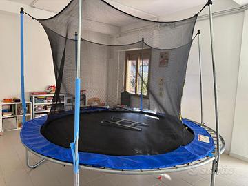 Vendo tappeto elastico da interno/esterno completo di rete di sicurezza perimetrale. Struttura solida in metallo, superficie di salto in buone condizioni e rete integra. Ideale per bambini, perfetto per attività ludiche e movimento in sicurezza. Facile da montare e smontare.