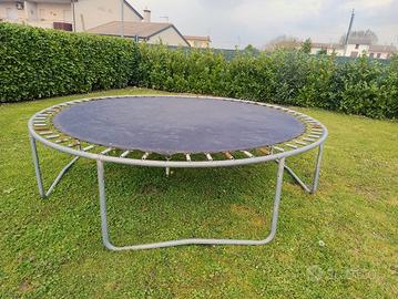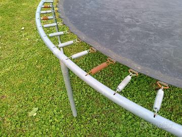 Regalo a chi lo viene a ritirare, nelle condizioni in cui si trova, diametro 3 mt, alcune molle arrugginite, tappeto in buono stato, ho anche i paletti dove fare passare la rete protettiva