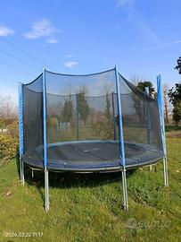 Vendo tappeto elastico crazyjump diametro 366 cm. Come si vede dalle foto la rete è staccata da un paletto ma è tranquillamente riparabile. Prezzo trattabile.