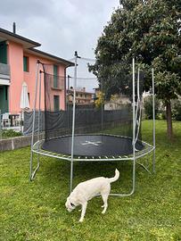 Vendo tappeto elastico, usato ma ancora in ottime condizioni, diametro 2,50 mt. Manca la copertura imbottita ma il resto è ok. Comprato nuovo in una famosa catena di attrezzatura sportiva. Smontaggio e ritiro zona Asolo. Prezzo trattabile.