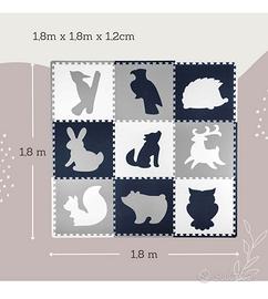 Tappeto gioco bambini extra grande – Questo tappeto bambini puzzle è composto da 6 quadrati in schiuma di 1,8 x 1,8 m ciascuno, quattro volte più grandi delle piastrelle tradizionali. Il tappeto morbido bambini è facile da montare e pronto in pochi secondi. Ideale per gattonare, giocare, yoga, fitness o esterni. Puzzle tappeto e decorazione elegante – Con design minimalista terrazzo e colori neutri, il tappeto si integra armoniosamente in ogni ambiente, donando alla cameretta un fascino scandinavo. 20% più spesso e morbido – Realizzato in EVA di alta qualità spesso 1,8 cm, questo tappeto puzzle bambini offre un morbido e confortevole cuscino su pavimenti duri e freddi. Le piastre ad incastro si chiudono senza spazi, garantendo stabilità e comfort. 100% sicuro e innocuo – Il tappeto a puzzle morbido è privo di formammide, BPA e ftalati e rispetta gli standard di sicurezza UE per i giocattoli. Grazie alla superficie impermeabile, si pulisce facilmente con un panno umido e sapone delicato.
