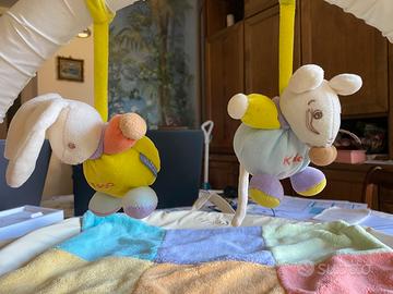 Bellissima e colorata palestrina della Kaloo, con morbido tappetino e dotata di 2 topini removibili sull’architetto. Richiudibile e portatile. Praticamente nuova; presenta piccole macchie dovute al tanto tempo chiusa come da foto. Misura da aperta 1000x65x40h, e da chiusa 65x40x15.