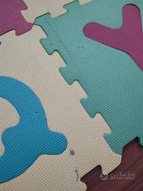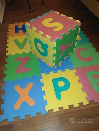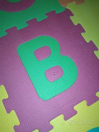 Tappeto in spugna per bambini. Puzzle componibile anche in 3D di 18 lettere complete e smontabili. Utilissimo per far giocare i piccoli e all'occorrenza, isolarli dal freddo del pavimento.