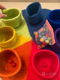 Tappeto montessoriano in fetro Rainbow Per sviluppare motricità fine Brand: Borgione Un contenitore blu è leggermente danneggiato Sconsigliato a chi ha allergia ad animali