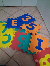 set 15 pezzi tappeto puzzle morbido composto da lettere e numeri non è completo ci sono lettere e numeri doppi