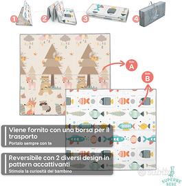 Tappeto Gioco Bambini Pieghevole 180x200x1.5cm Palestrina Neonato Montessori Reversibile Non Tossico E Impermeabile In Schiuma Per Bimbi. Palestra Neonati - Tappeto Tummy Time Neonati.