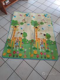 Tappeto per bambini 0-3 anni double face. Da un lato ci sono le lettere dell'alfabeto in inglese abbinate alle parole e immagini; dall'altro lato invece ci sono disegni di animali.