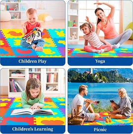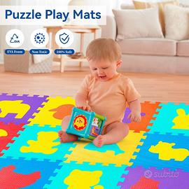 16 TASSELI INTERATTIVI: Forma un tappeto 120x120 cm (30x30 cm per tessera x 1 cm spessore). Motivi animali vivaci stimolano riconoscimento visivo e sviluppo cognitivo. CERTIFICATO SICUREZZA PER BIMBI: Schiuma EVA eco-compatibile 100% non tossica: zero BPA, ftalati o formaldeide. Conforme alle normative UE EN71-3. SVILUPPO PRE-SCOLASTICO: Colori ad alto contrasto e forme geometriche potenziano capacità visive, coordinazione e apprendimento sensoriale. PULIZIA LAMPO: Superficie impermeabile: elimina macchie di latte, polvere e liquidi con un panno umido o aspirapolvere. PROTEZIONE VERSATILE: Isola da pavimenti freddi, riduce rumori ed evita scivoloni. Ideale per casa, asili nido e scuole materne.