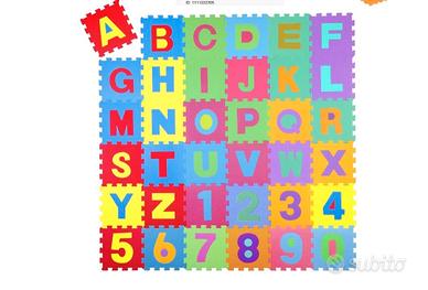 Tappeto Puzzle 36 pezzi - con numeri e lettere colorati in morbida gomma EVA resistente, isolante, lavabile Ogni pezzo misura 31.5x31.5x1