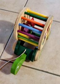 Vendo tartaruga in legno da tirare che seguirà il bambino durante i suoi primi passi. Allo stesso tempo é un giocattolo utile sia per sviluppare la motricità sia per l'intelligenza mediante solidi geometrici colorati da inserire. Quando si tira la tartaruga, il guscio rimovibile gira con gli elementi all'interno che fanno rumore. La casetta della tartaruga è rimovibile e utilizzabile anche singolarmente come gioco ad incastro, tramite il quale sviluppare il riconoscimento di forme e colori.