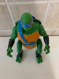 Tartaruga Ninja Leonardo altezza circa 15 cm. È dotato di un suono che si attiva muovendo una gamba. Fa una piroetta acrobatica come da foto