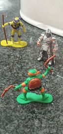 Set di miniature delle Tartarughe Ninja con armi e Shredder. Buone condizioni come da foto