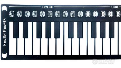 Piano Roll 49 Tasti Tastiera Avvolgibile Ripiegabile Portatile per bambini praticamente nuova. Tastiera in silicone ripiegabile, con 10 ritmi, vari timbri e effetti e pad sonori. Modalità di accompagnamento con singole note o accordi.Funzione Apprendimento con la possibilità di registrare. Regolazione del tempo e del volume. Con altoparlante integrato e presa cuffie. Alimentazione con 3 batterie AA da 1.5v o alimentatore usb fornito Con scatola originale e istruzioni.