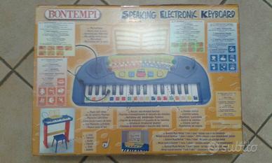 Speaking electronic keyboard della Bontempi: la voce guida alla scoperta di suoni, stili e canzoni. Con microfono per la voce, sgabello, 7 giochi interattivi per muovere i primi passi nella musica, magico gioco di luci, 7 strumenti musicali, 7 ritmi musicali, funzione di registrazione e riascolto delle melodie, regolazione del volume.