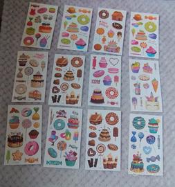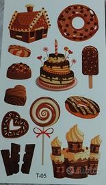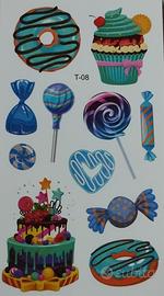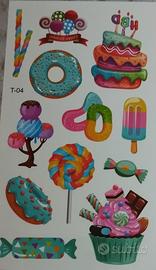 10 fogli di tatuaggi colorati per bambini stile cuoricini e dolci