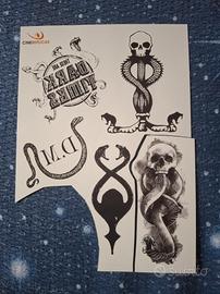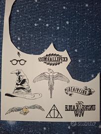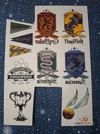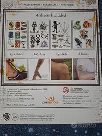 Tatuaggi originali di Harry Potter, di Cinereplicas. Sono temporanei e resistenti all'acqua, adatti anche ai bambini dai 4 anni in sù come indicato sulla confezione.