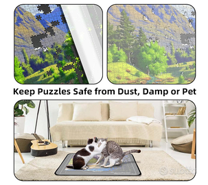 2. Design astuto della copertura antipolvere: La copertura antipolvere aggiornata presenta un sistema di chiusura a strappo su tutti e quattro i bordi del tappetino per puzzle, impedendo ai pezzi di scivolare durante il movimento. Questo design pratico protegge efficacemente il tuo capolavoro del puzzle da polvere, umidità e interferenze degli animali domestici